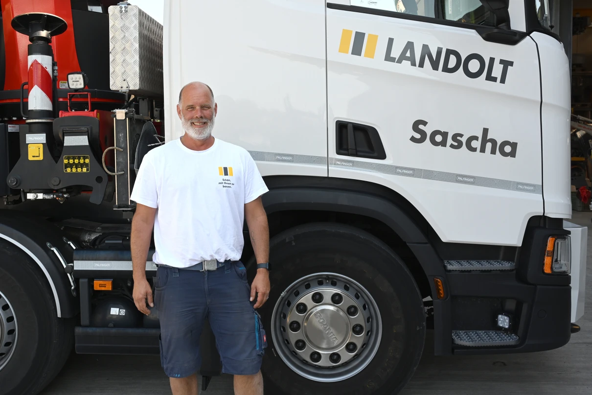 Sieben Chauffeure und deren Lastwagen sind täglich für unsere Baustellen im Einsatz. Unser Disponent Oliver regelt die Transporte und stellt sicher, dass die Fuhren pünktlich auf der Baustelle sind.