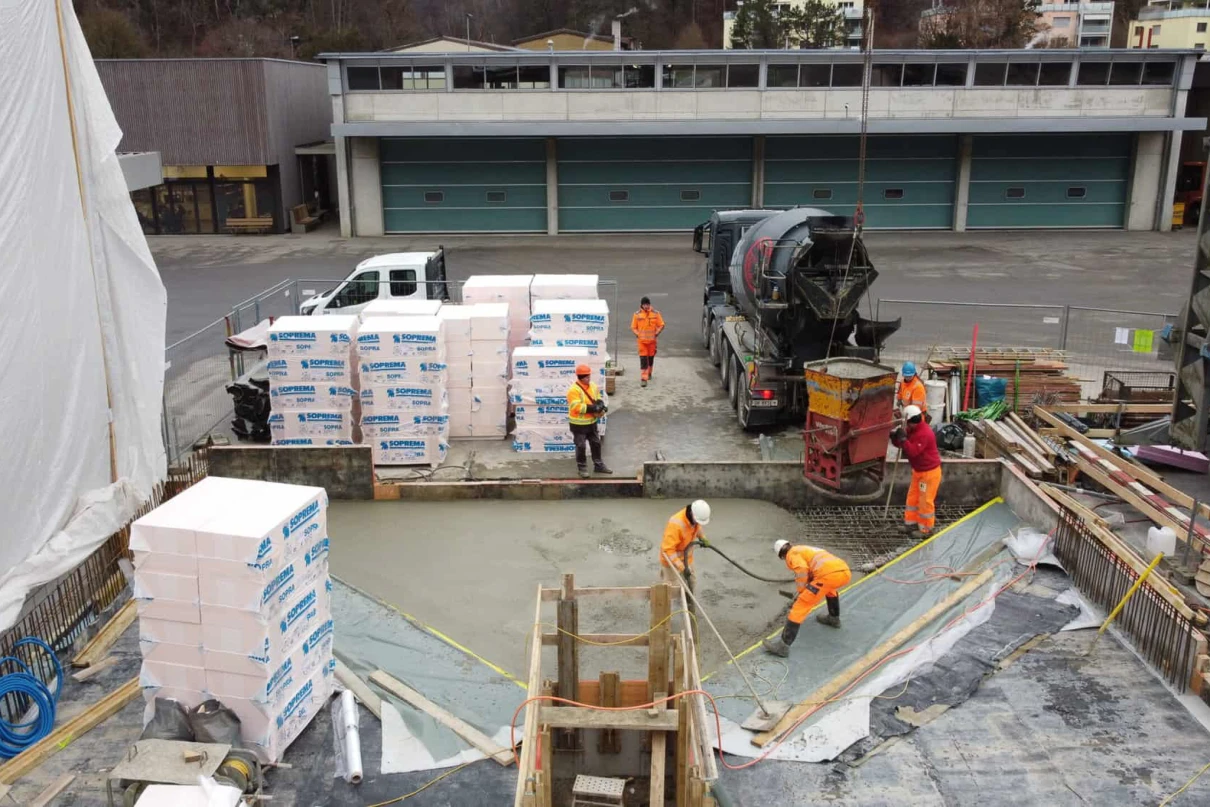 In einer zweiten Bauphase wurde auf der Basis des bestehenden Untergeschosses die neue Werkstatthalle erstellt. Neben der Werkstatt für den Unterhalt der städtischen Fahrzeuge entstanden auch diverse neue Büro- und Lagerräume.