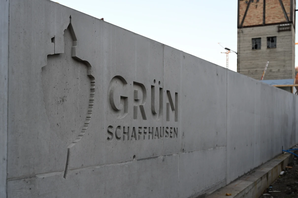 Südlich des bestehenden Wasserturms wurden mehrere Stützmauern erstellt. In die Schalung integriert wurden eine dauerhafte Beschriftung «Grün Schaffhausen» sowie ein Abbild des Munots, des Wahrzeichens der Stadt Schaffhausen. Ergänzend dazu wurde eine Stützwand mit einem integrierten Ortbeton-Bauteil zur Aufnahme eines Grillelements realisiert.