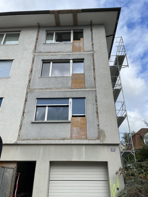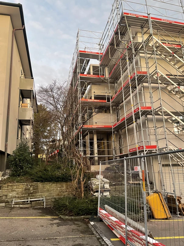 An der Sommerhaldenstrasse in Winterthur konnten wir dieses Jahr die Sanierung eines Mehrfamilienhauses abschliessen. Unser Auftrag bestand darin, die alten Balkone abzubrechen und durch neue Betonbalkone zu ersetzen. Nach den Abbrucharbeiten musste zuerst ein alter Öltank entfernt werden, bevor wir mit dem Bau der neuen Balkone beginnen konnten. Zudem wurde der Hauszugang erneuert und ein Natursteinmauerwerk angepasst.