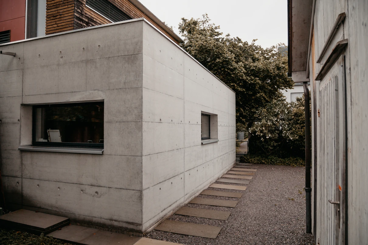 In einem Wohnquartier mitten in Winterthur durfte die Kundenabteilung der Hans Stutz AG diesen schönen Sichtbetonanbau realisieren.