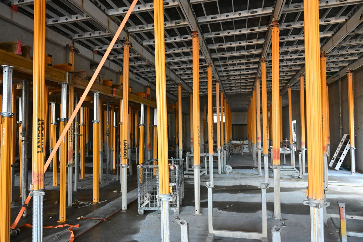 Die Tragstruktur folgt den Fahrgassen in den Hallen und setzt sich schottenartig in die Neben- und Büroräume fort. Bei der Materialwahl standen Ästhetik, Nachhaltigkeit und Langlebigkeit im Vordergrund: Lokales Holz als nachwachsender Rohstoff prägt das Erscheinungsbild. Robuste Materialien, konstruktiver Holzschutz sowie Betonsockel und weit auskragende Vordächer sichern eine dauerhafte Beständigkeit.