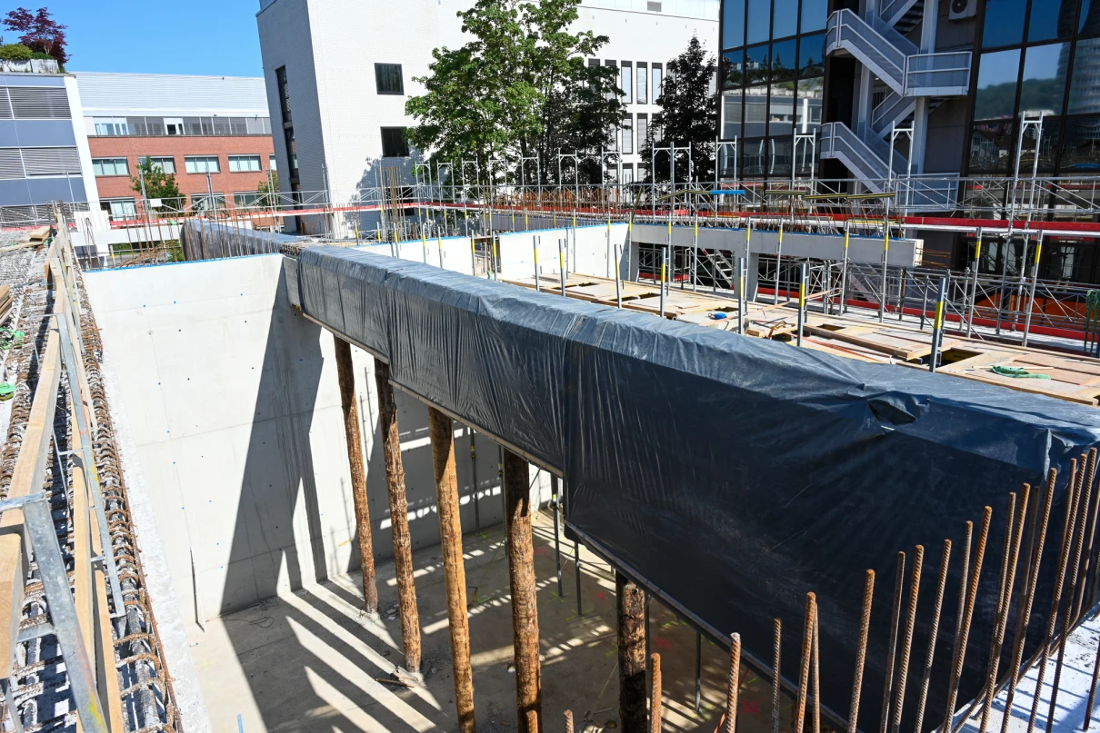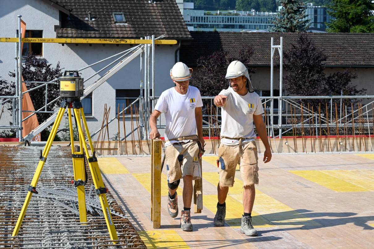 Die Verantwortung für die Bauausführung liegt bei Bauführer Silvan Roth, der gemeinsam mit Polier Niclas Stocker und seinem engagierten Team für einen reibungslosen, qualitativ hochwertigen Ablauf auf der Baustelle sorgt. Präzision, Verlässlichkeit und Teamarbeit sind gefragt – denn ein Bildungsbau wie dieser stellt höchste Anforderungen an Funktionalität, Sicherheit und architektonische Qualität.