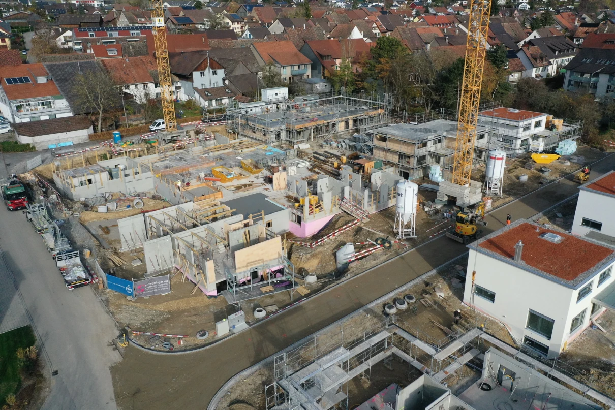 Auf dieser Überbauung in Löhningen entstehen insgesamt 2 Mehrfamilienhäuser mit 18 Mietwohnungen, 6 Doppeleinfamilienhäuser zum Mieten, 5 Einfamilienhäuser zum Kaufen und eine grosse Tiefgarage, welche mit den Mehrfamilien- und Doppeleinfamilienhäusern erschlossen ist.