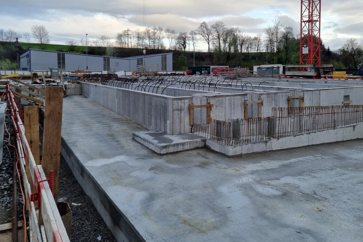 Im Anschluss an die neue mechanische Reinigungsstufe wird der Neubau einer zweistrassigen Biologie umgesetzt (Belüftungs und Nachklärbecken), wie auch der Umbau und Erweiterung des Betriebgebäudes