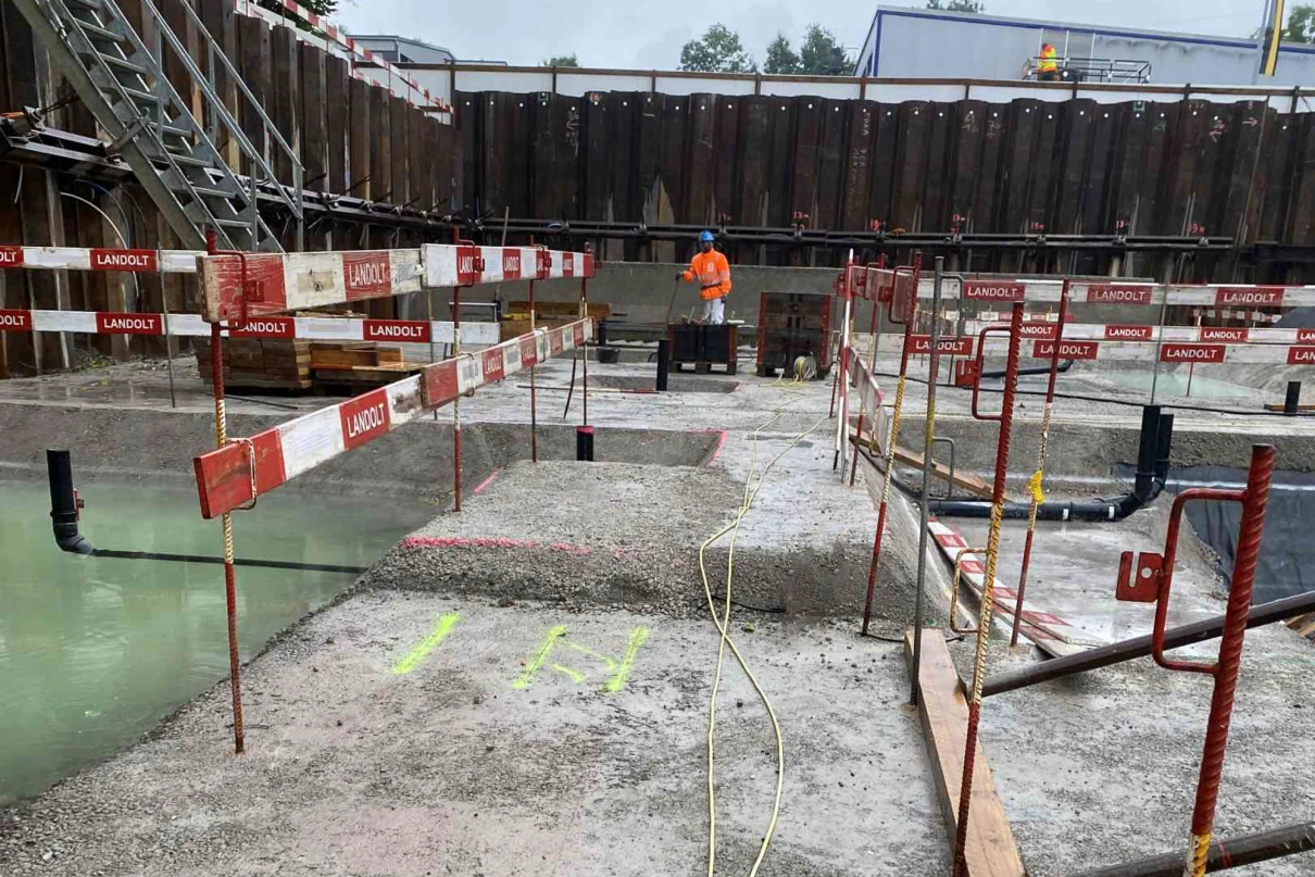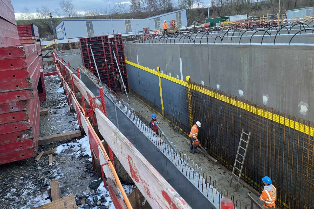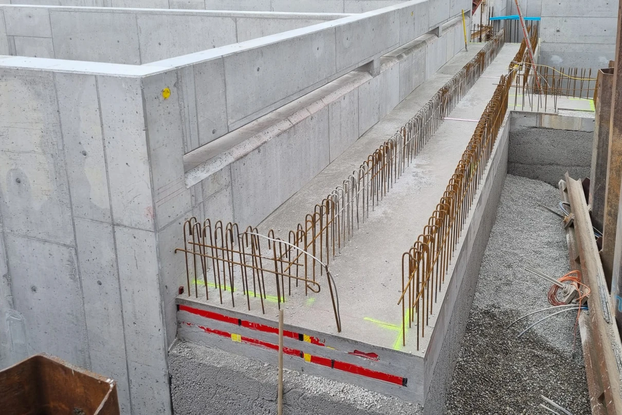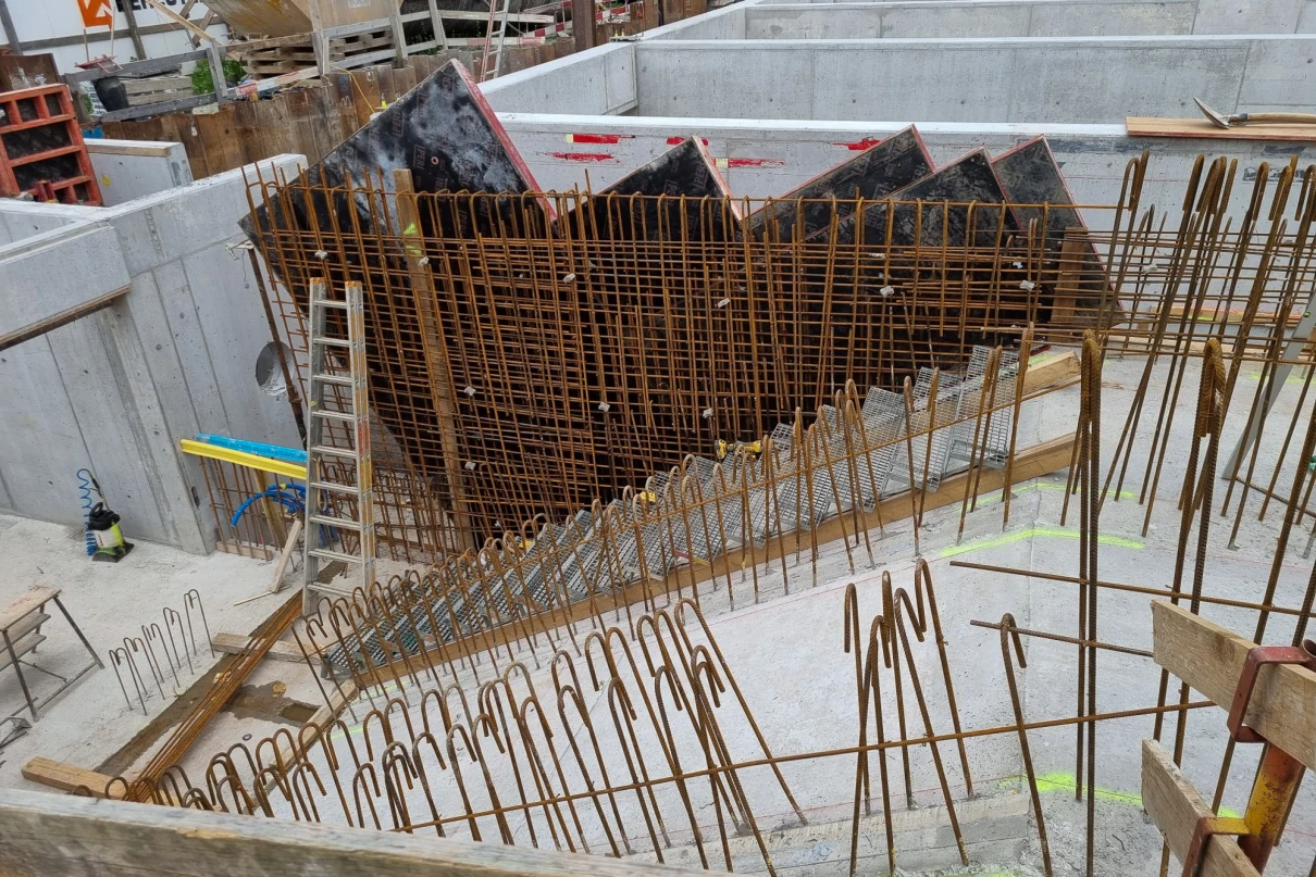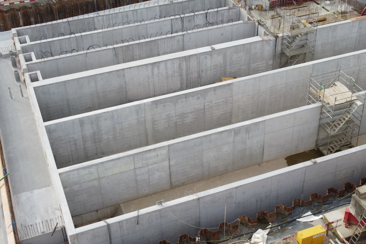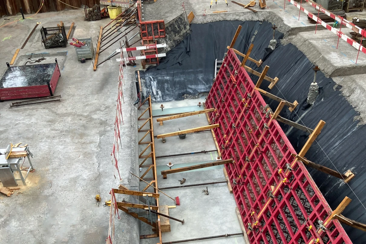 Die verschiedenen Abhängigkeiten aller Gewerke, die hohen Wände und die Anforderungen an die Abdichtung stellen entsprechende Herausforderungen an die Ausführung.
