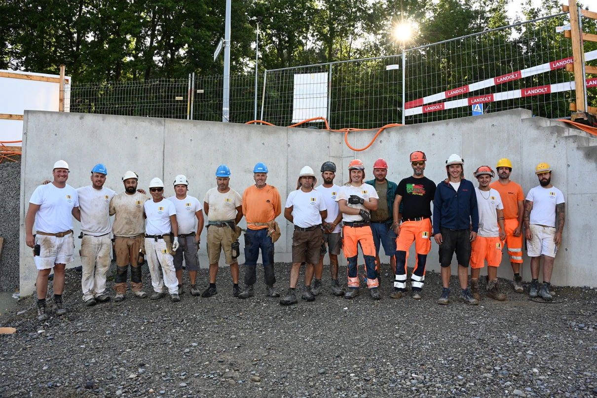 Der markante Baukörper setzt am Übergang zur offenen Wiesenlandschaft einen selbstbewussten Akzent. Sein Entwurf erinnert in seiner Anmutung an landwirtschaftliche Bauten, bewahrt jedoch eine eigenständige Gestaltung, die dem Ort eine klare Identität verleiht. Die lange Fassade wird durch eine klare Struktur und feine Farbabstufungen gegliedert und erhält so eine ausgewogene Wirkung im menschlichen Massstab.