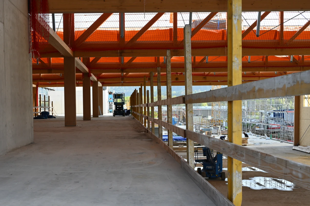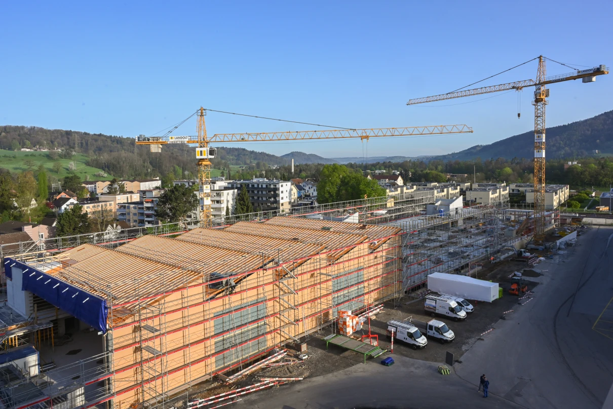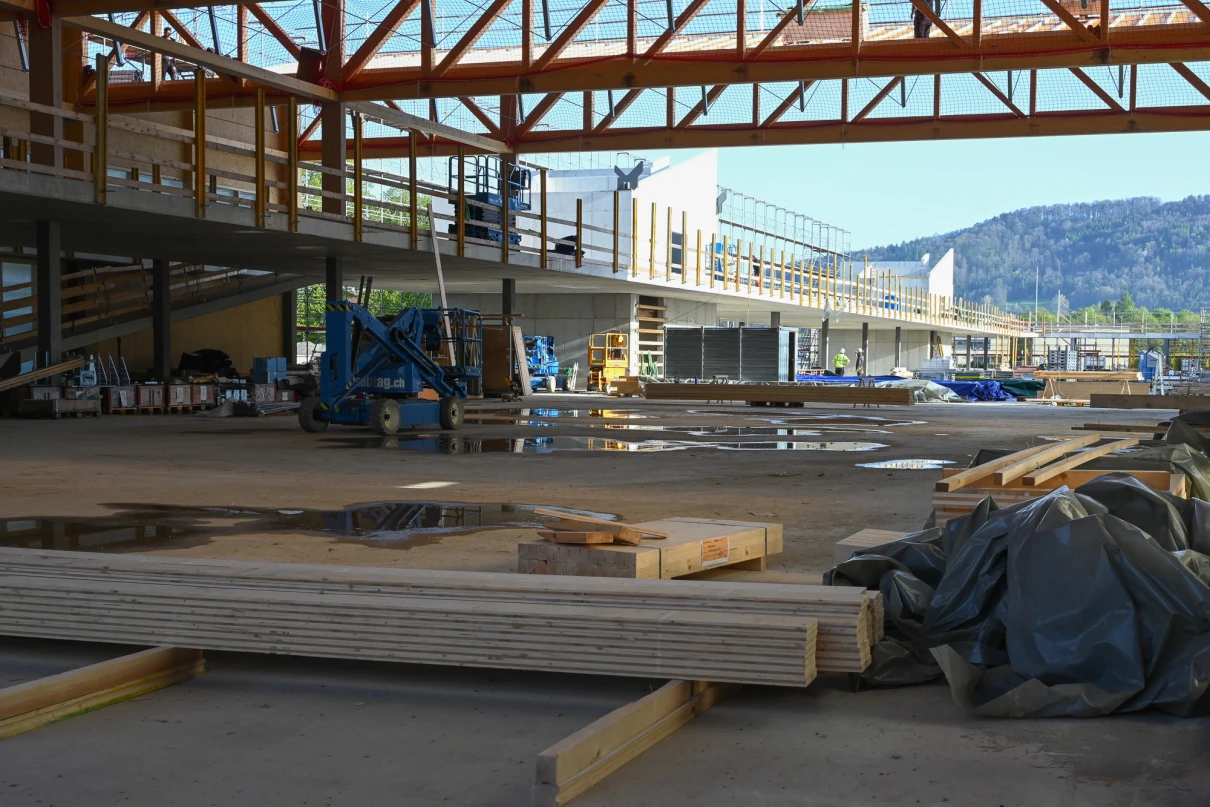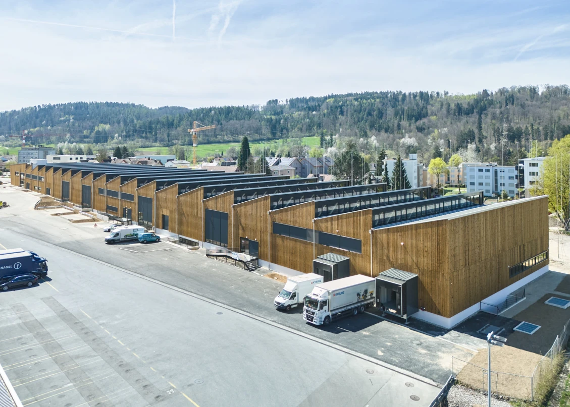 Die Produktionshalle Kyburz beeindruckt mit einer imposanten Hallenhöhe von bis zu 10,5 Metern. Ein markantes Merkmal dieser Halle ist ihre Konstruktion komplett aus Holz, was nicht nur ökologische Vorteile bietet, sondern auch eine warme und einladende Arbeitsumgebung schafft. Das Untergeschoss ist in Monobeton und Kalksandstein ausgeführt. Die Geschossfläche beträgt insgesamt 14.650 Quadratmeter, was ausreichend Platz für Produktionsanlagen und Lagerbereiche bietet. Mit einem beeindruckenden Gebäudevolumen von 86.000 Kubikmetern und Abmessungen von 230 Metern Länge und 30 Metern Breite ist die Produktionshalle Kyburz ein gelungenes Meisterwerk. Zusätzlich ist die komplette Dachfläche mit einer PV-Anlage ausgestattet, die nachhaltige Energieerzeugung unterstützt und die Umweltbelastung reduziert.
