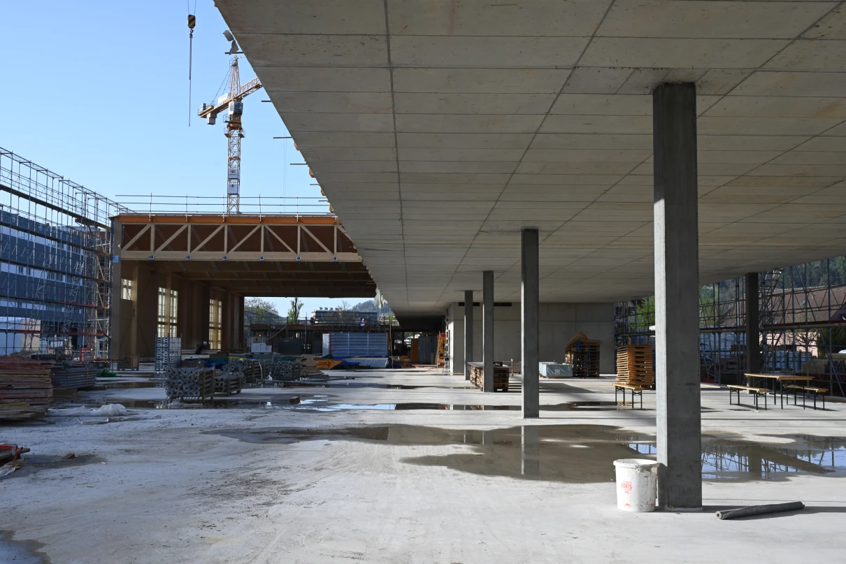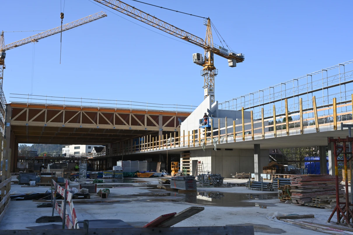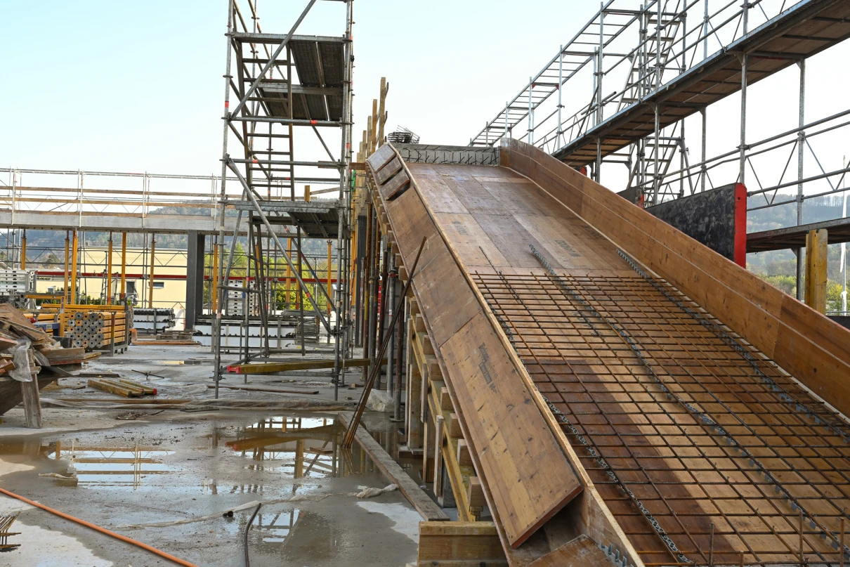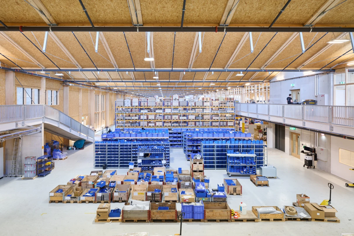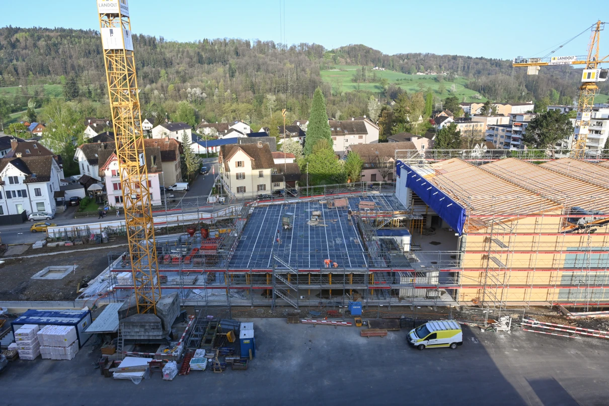 Die Produktionshalle Kyburz beeindruckt mit einer imposanten Hallenhöhe von bis zu 10,5 Metern. Ein markantes Merkmal dieser Halle ist ihre Konstruktion komplett aus Holz, was nicht nur ökologische Vorteile bietet, sondern auch eine warme und einladende Arbeitsumgebung schafft. Das Untergeschoss ist in Monobeton und Kalksandstein ausgeführt. Die Geschossfläche beträgt insgesamt 14.650 Quadratmeter, was ausreichend Platz für Produktionsanlagen und Lagerbereiche bietet. Mit einem beeindruckenden Gebäudevolumen von 86.000 Kubikmetern und Abmessungen von 230 Metern Länge und 30 Metern Breite ist die Produktionshalle Kyburz ein gelungenes Meisterwerk. Zusätzlich ist die komplette Dachfläche mit einer PV-Anlage ausgestattet, die nachhaltige Energieerzeugung unterstützt und die Umweltbelastung reduziert.