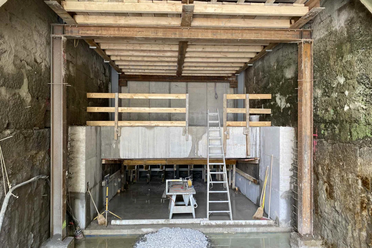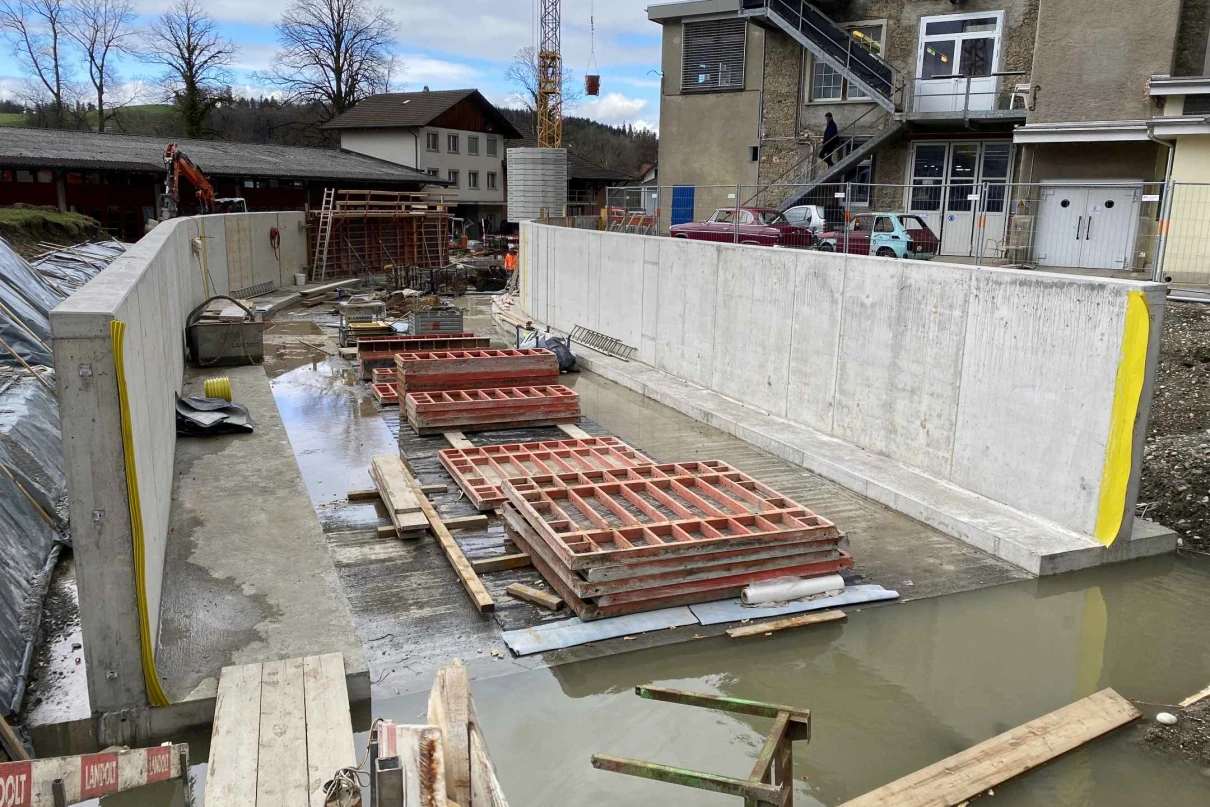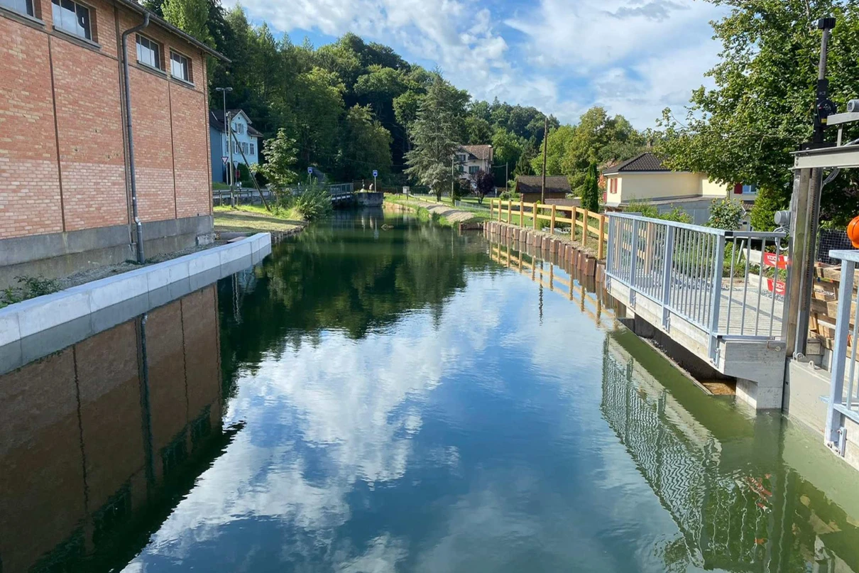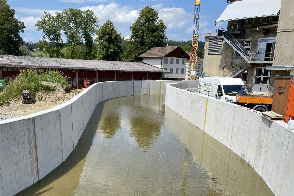 Neubau Brücke «Säge» sowie neuer Betonkanal und neue Rechenanlage.