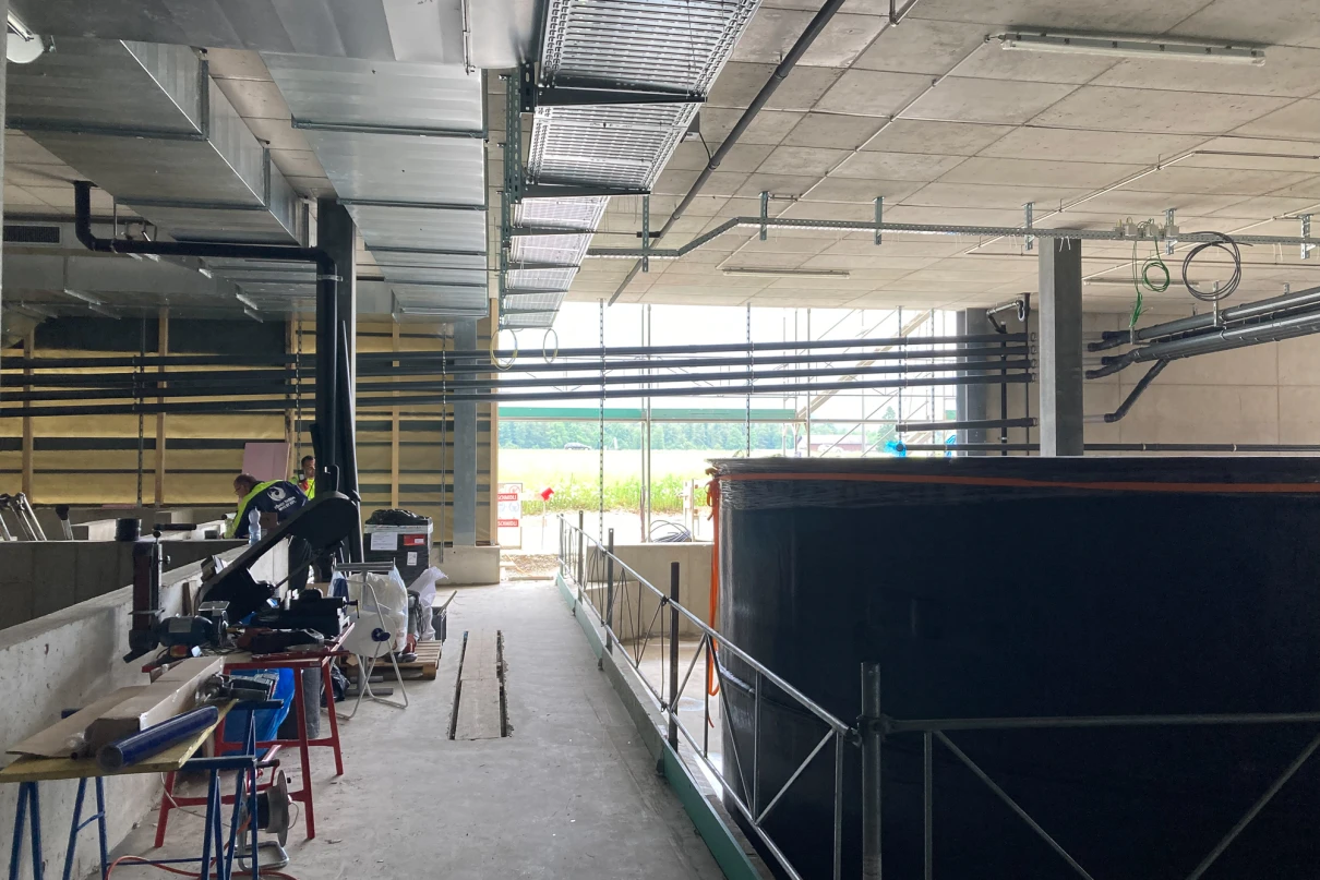 Für den Totalunternehmer GENU Partner AG durften wir eine grosse Erweiterung der Fischzucht der FTN AquaArt AG in Rafz erstellen. Im Gebäude gibt es diverse Aufzuchtbecken für Heimische Fischarten. Das zentrale Thema für die Fische, ist natürlich der Wasserhaushalt im Gebäude, deshalb gab es unter der Bodenplatte ein komplexes System von Abwasser und Frischwasser. Auch der Betonbau wurde spezifisch an die Nutzung und die Platzverhältnisse der Aufzuchtanlagen angepasst.