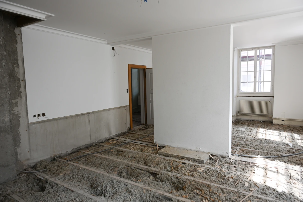 Es wurde zurückgebaut, was entfernt werden musste, gespitzt, Böden wurden geöffnet, Stahlträger versetzt, diverse Brandabschottungen erstellt und Leitungen verdeckt verlegt.