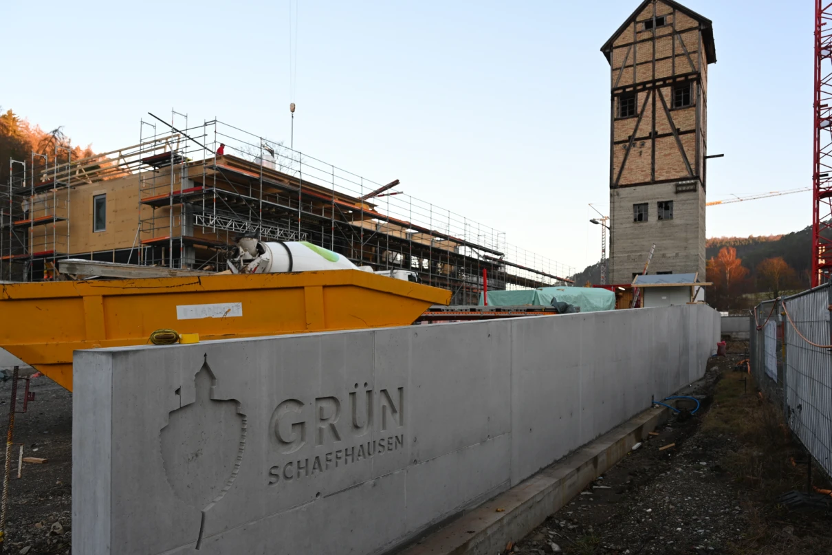Südlich des bestehenden Wasserturms wurden mehrere Stützmauern erstellt. In die Schalung integriert wurden eine dauerhafte Beschriftung «Grün Schaffhausen» sowie ein Abbild des Munots, des Wahrzeichens der Stadt Schaffhausen. Ergänzend dazu wurde eine Stützwand mit einem integrierten Ortbeton-Bauteil zur Aufnahme eines Grillelements realisiert.